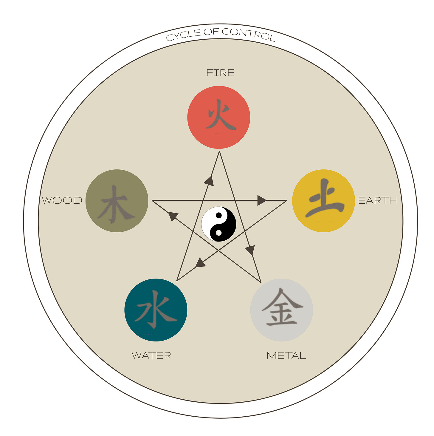 Last but not least is the Cycle of Control (Destructive Cycle). Instead of nourishing, this cycle shows how each element keeps another in check - maintaining balance and preventing excess. This cycle moves in a star-like direction.